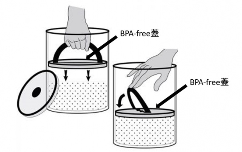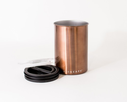 Airscapeは特許取得のBPA-free蓋でキャニスター内の空気を排出し溜め込まないため、酸化を防ぎ新鮮なコーヒーの香りをより長く保つことができます。