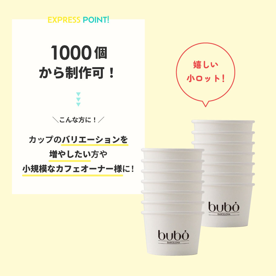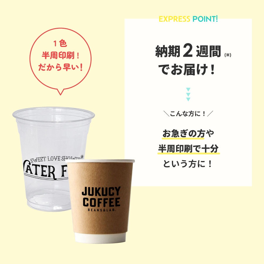 貴店のオリジナルデザインを半周印刷したカップを小ロット・短納期で製作いたします。