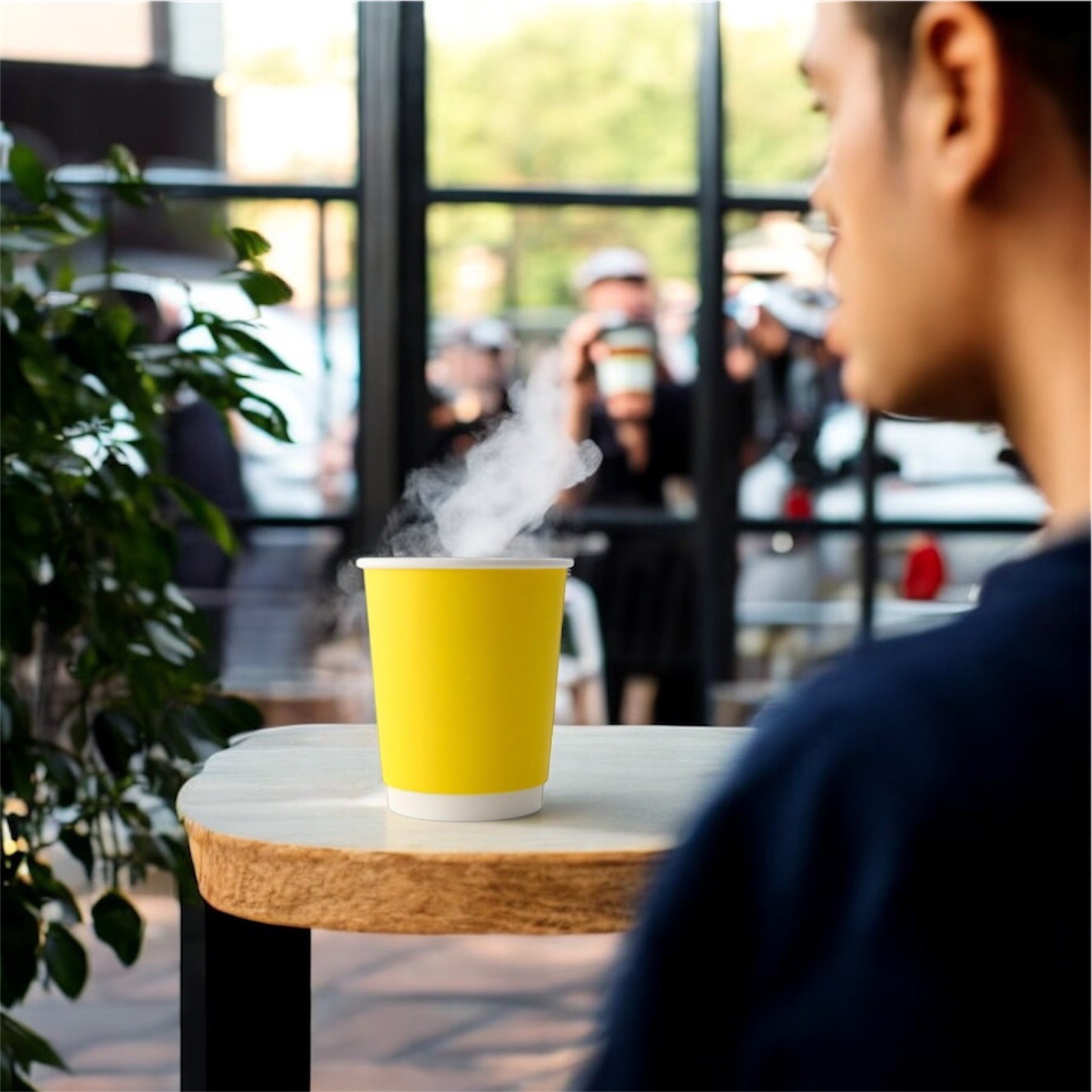 90mm口径 10オンス (300ml) 断熱二重イエロー紙コップ 1000個